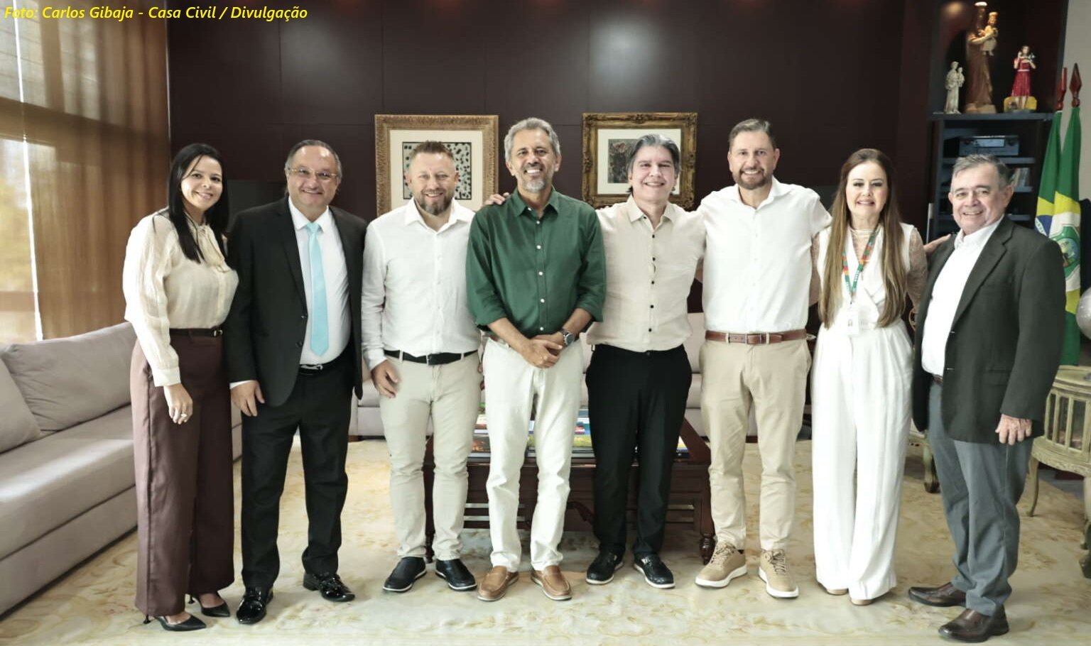 O governador Elmano anunciou nesta sexta-feira (13) a parceria com a empresa Mallei Calçados, do Rio Grande do Sul, para a instalação de uma filial em Granja, no Noroeste do Ceará, a 300 quilômetros de Fortaleza, por meio da Política de Incentivos e Subvenções. O encontrou reuniu o sócio da empresa calçadista, Vanderlei Mombach; do prefeito de Granja, Aníbal Filho; do presidente da Assembleia Legislativa (Alece), Romeu Aldigueri; além dos diretores da Agência de Desenvolvimento Econômico do Ceará (Adece), Liana Fujita e Luís Eduardo Barros.