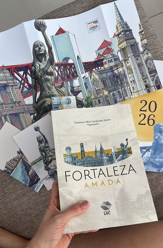 O livro “Fortaleza Amada” já está disponível para compra individual, assim como o Planner Fortaleza Amada 2026, criado para acompanhar o cotidiano com a memória e o imaginário da cidade sempre por perto. Escolha como viver essa experiência: leitura, planejamento ou os dois. Compre pelo WhatsApp da Editora UFC.