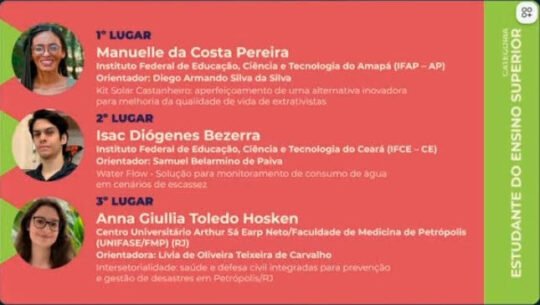 Com um projeto que propõe solução para monitoramento de consumo de água em cenário de escassez, intitulado “Water Flow”, o estudante Isac Diógenes Bezerra, do Campus Jaguaribe do IFCE, conquistou o segundo lugar nacional do Prêmio Jovem Cientista – categoria Ensino Superior.