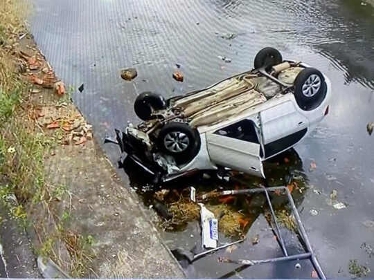 Um veículo despencou e está dentro do canal da Avenida Aguanambi, mais precisamente no trecho que dá acesso à BR-116.
