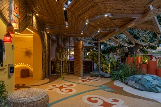 Outro destaque é o ambiente Anímica, assinado por Narcélio Grud. Um verdadeiro parque sensorial, o espaço convida meninos e meninas a desenvolverem habilidades cognitivas, emocionais e motoras por meio da exploração livre e interativa. Materiais naturais, brinquedos repaginados e dispositivos ópticos e sonoros criam uma experiência única, onde cada criança pode inventar sua própria brincadeira.