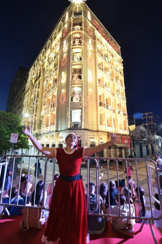 A Casa do Papai Noel já está aberta ao público na Praça do Ferreira, no Centro de Fortaleza. A estrutura, que segue em funcionamento até 23 de dezembro, integra a programação do,Ceará Natal de Luz.