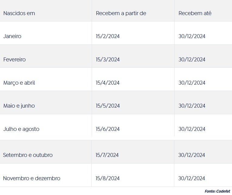 A partir do próximo ano, o abono salarial será liberado nos dias 15 de cada mês, de fevereiro a agosto, mesmo nos casos em que a data cair em fim de semana e feriados. O Codefat fixou as datas de forma definitiva, eliminando a necessidade de aprovação do calendário a cada ano.