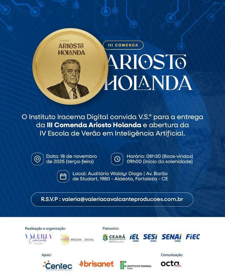 É terceira edição da Comenda Ariosto Holanda, uma iniciativa do Instituto Iracema Digital.