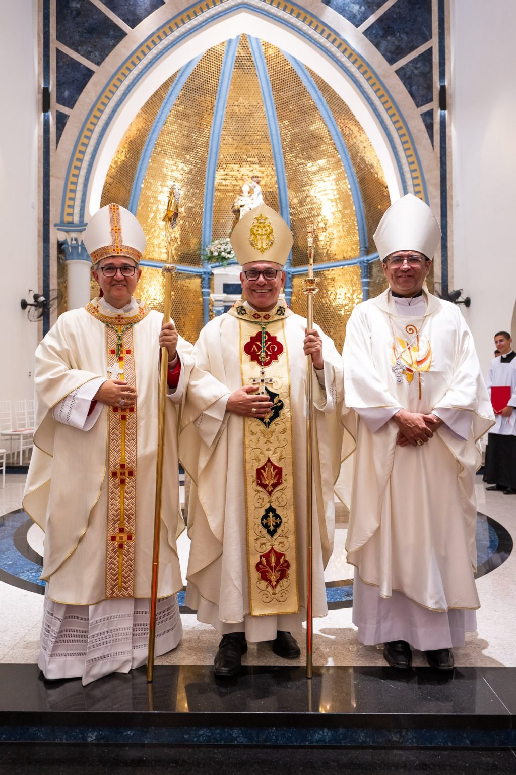 Da esq. para a dir.: Dom Jânison de Sá, Dom Gregório Paixão, OSB, Dom Antonio Carlos. Foto: Sercom/ArqFor.