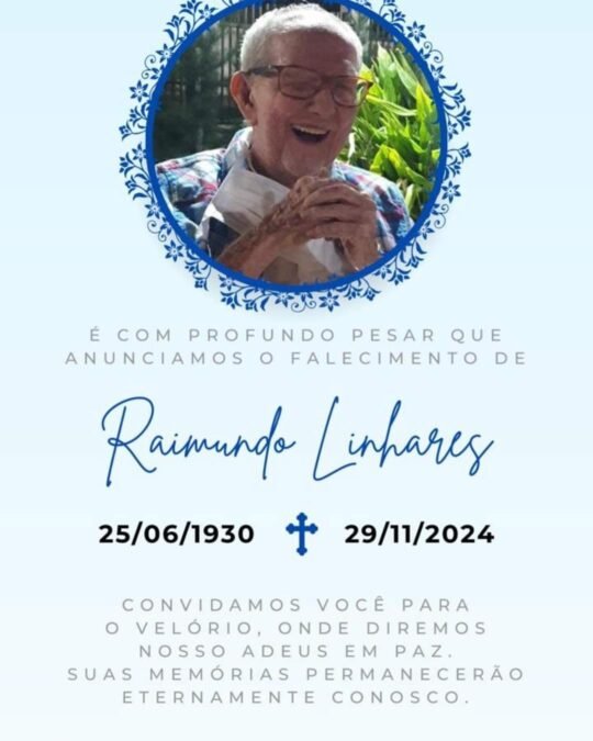 Morreu nesta sexta-feira (29), por falência múltipla de órgãos, o ex-vereador de Fortaleza Raimundo Linhares, 94 anos.
