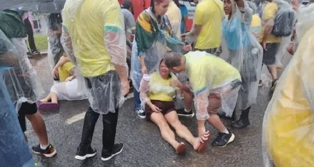 Raio atinge manifestantes na Praça do Cruzeiro, em Brasília