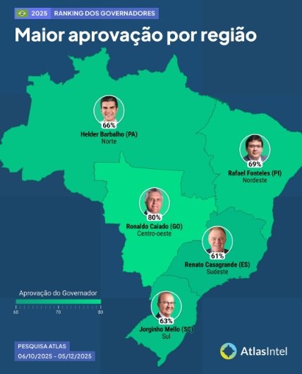 O campeão da temporada é o governador de Goiás, Ronaldo Caiado (União Brasil), com uma campanha bem superior (80% aprovação – 5% não sei – 15% reprovação) ao vice campeão Rafael Fonteles (PI/PT – 69% aprovação – 9% não sei – 22% reprovação).