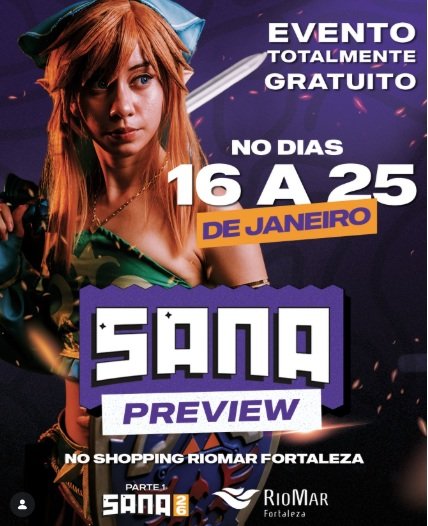 Durante 10 dias, o público apaixonado pelos campeonatos de e-sports, cultura pop, cosplay poderá vivenciar um pouco do universo do Sana Preview 2026 Parte 1, que tem início na manhã desta sexta-feira (16), a partir das 10 horas, no Shopping RioMar Fortaleza, Piso L2, ao lado da Loja da Zara, no bairro Papicu. O acesso é gratuito.
