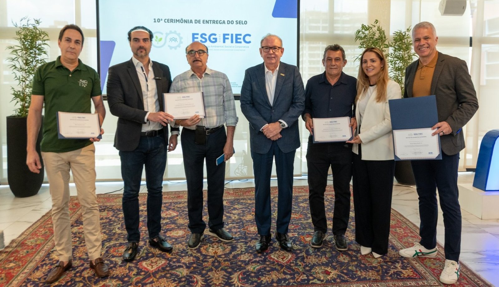 O selo foi entregue por Ricardo Cavalcante a Guido Lemos, CEO da Nova Eólica Buriti; Camila Fragoso Aguiar, sócia administradora da Mineradora Água Límpida e presidente do Sindicato das Indústrias de Águas Minerais, Cerveja e Bebidas em Geral no Estado do Ceará (Sindbebidas); Juliano Pereira, diretor da Love Secret Lingerie; e Luis Carlos Queiroz, CEO da B&Q Energia e presidente do Sindicato das Indústrias de Energia e de Serviços do Setor Elétrico do Estado do Ceará (Sindienergia).