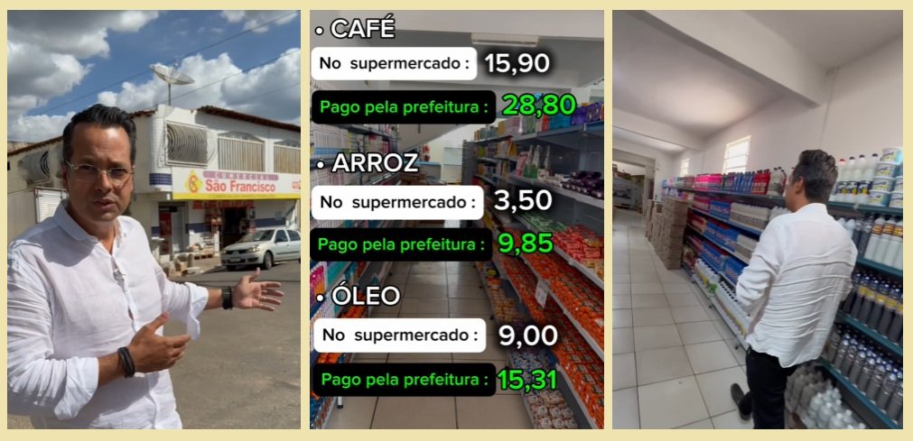 Além dos produtos com até três vezes o valor nas prateleiras do mercadinho do interior do Piauí, o estabelecimento nunca havia participado de uma concorrência, mesmo com o prefeito Naumi conseguindo uma dispensa de licitação para a compra.